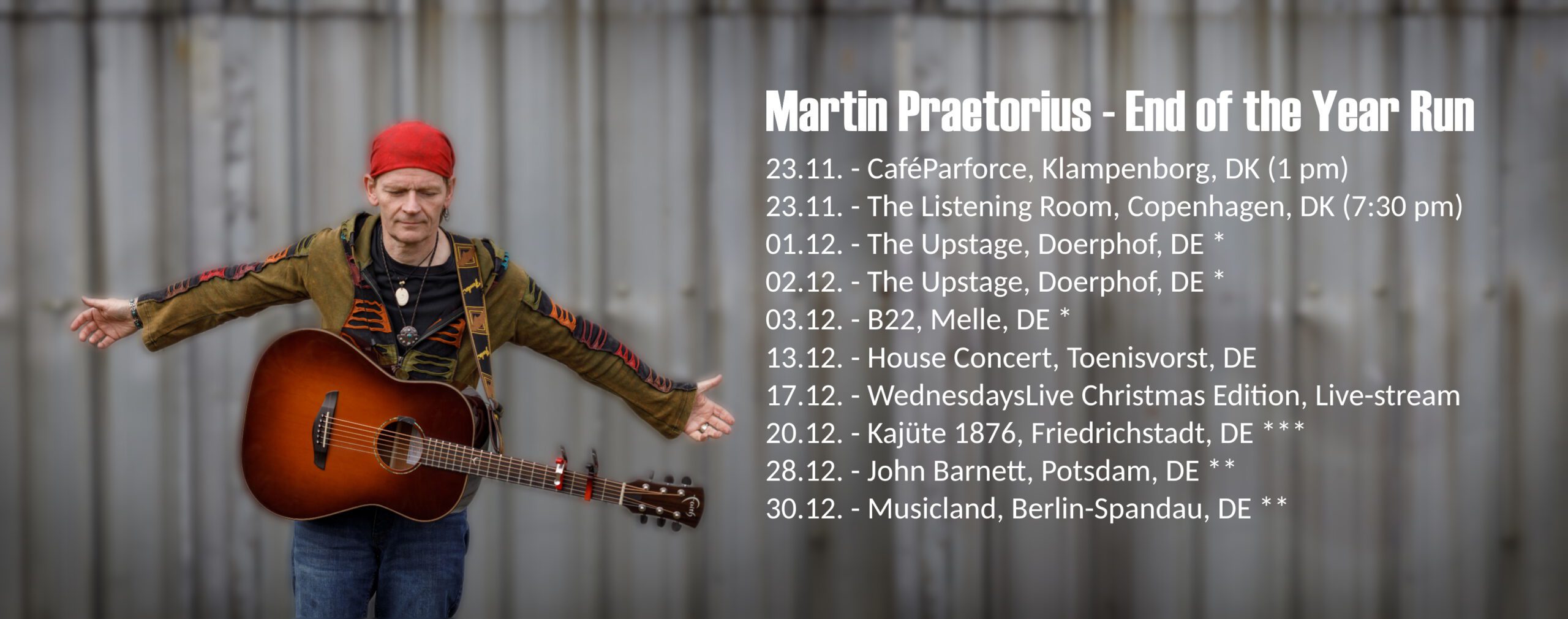 For booking inquiries, please write to: andre@martinpraetorius.net